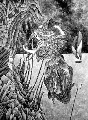 aquarell und acryl mit tusche
